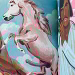 In Hiro’s world rational scientific order has completely collapsed – it’s almost as if the Enlightenment had never happened! Through a series of related images Hiro describes a world that is surreal, amusing and threatening by turns. His richly coloured, expressionist paintings are populated by a host of characters.